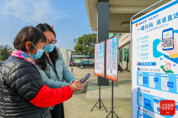 江蘇省張家港市紀(jì)委監(jiān)委聚焦做實(shí)監(jiān)督,創(chuàng)新信息化監(jiān)督平臺(tái)建設(shè),用“碼上監(jiān)督”推動(dòng)監(jiān)督下沉、落地見效,維護(hù)群眾利益。圖為該市紀(jì)檢監(jiān)察干部在南豐鎮(zhèn)永聯(lián)村指導(dǎo)群眾掃碼使用基層廉勤監(jiān)督平臺(tái)。(江蘇省張家港市紀(jì)委監(jiān)委 供羅燕 攝)