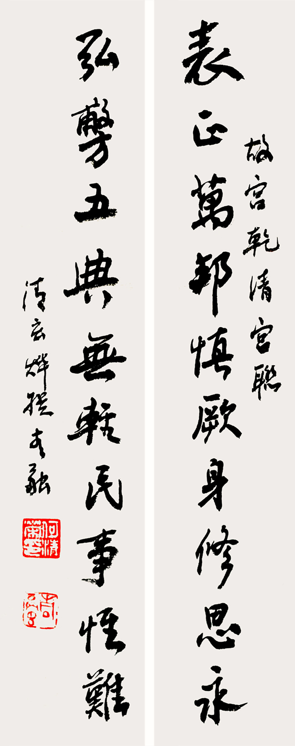 乾清宮,故宮后廷三宮之首,在著名的“正大光明”匾旁,有一副清圣祖康熙御筆題書楹聯(lián)。這四句話,都是從古書《尚書》中化用而來。