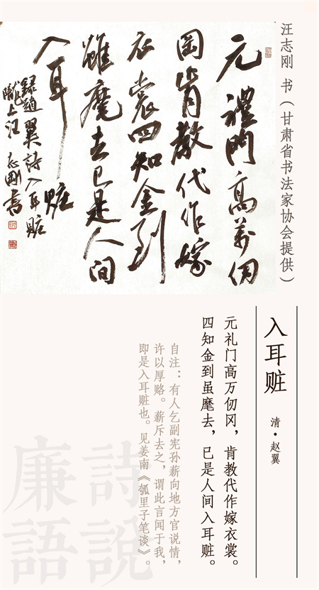 自注:有人乞副憲孫薪向地方官說情,許以厚賂。薪斥去之,謂此言聞于我,即是入耳贓也。見姜南《瓠里子筆談》。