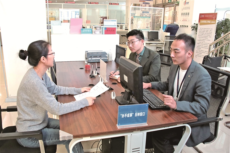 山東省青島市黃島區(qū)紀委監(jiān)委聚焦漠視群眾合理訴求、推諉扯皮“打太極”、不擔(dān)當不作為等不正之風(fēng),“懲治防”一體發(fā)力,堅決糾治不擔(dān)當不作為問題。圖為該區(qū)紀檢監(jiān)察干部在“辦不成事”反映窗口向群眾了解有關(guān)情況。杜翔宇 攝
