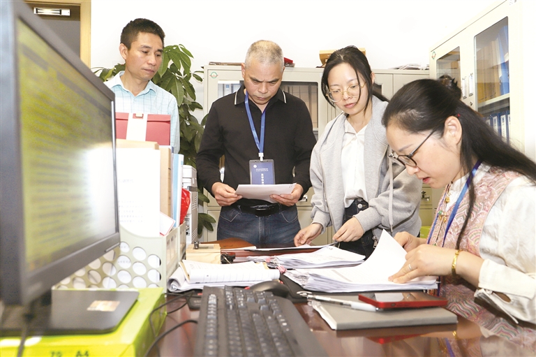 “五一”將至,浙江省金華市婺城區(qū)紀(jì)委監(jiān)委堅(jiān)守節(jié)點(diǎn),對(duì)重點(diǎn)場(chǎng)所、重要領(lǐng)域和關(guān)鍵環(huán)節(jié)開展監(jiān)督檢查,打好糾治“四風(fēng)”組合拳。圖為該區(qū)紀(jì)委監(jiān)委聯(lián)合審計(jì)、財(cái)政等部門對(duì)某單位“三公”經(jīng)費(fèi)使用和津補(bǔ)貼發(fā)放情況進(jìn)行抽查。樓婷 攝
