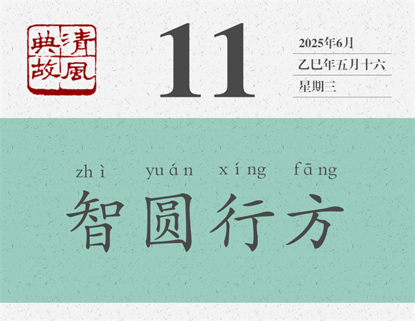 “智圓行方”說的是思與行的關系問題。通俗地說,就是腦子要靈活,手腳要規(guī)矩。明人張居正《襄毅楊公墓志銘》:“維公之德,智圓行方,忠不近名,言不泥常。”思與行,看起來各自獨立,實際上密不可分。任何事情,都得想好了再做。怎樣才能想好呢?那就得把自己能想到的各種可能都拿出來分析分析、比較比較;如果還覺得不夠,那就得跟別人交流,跟別人溝通。同樣,做任何事情,都得一以貫之。只要認準了、認定了,就要堅持做下去,不能今天這樣明天那樣,今天聽你的明天聽他的;也不能搖搖擺擺,走走停停。久久為功,勝利才會向你招手。