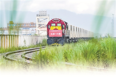 8月23日,前往老撾萬象的國際貨物列車駛出中老鐵路中國玉溪研和站。當(dāng)日,中老鐵路國際貨物列車(玉溪—萬象)實(shí)現(xiàn)雙向開行。新華社記者 陳欣波 攝