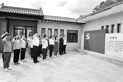 近日,山西省紀委監(jiān)委機關(guān)部分黨員在晉綏八分區(qū)(專署)舊址開展“傳承紅色基因,砥礪初心使命”主題黨日活動。圖為黨員重溫入黨誓詞。王鵬波 攝