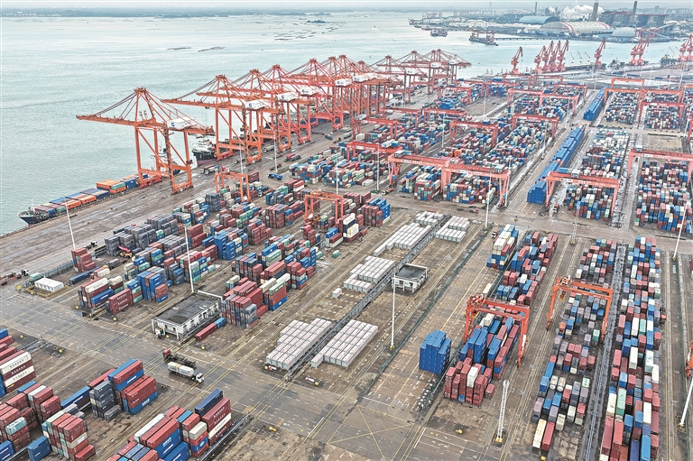 時下,廣西北部灣港欽州港區(qū)碼頭橋吊、龍門吊等自動化設備有序運轉,車輛來往穿梭,港口貨運呈現(xiàn)一派繁忙景象。圖為3月4日拍攝的廣西北部灣港欽州港區(qū)碼頭。新華社記者 周華 攝