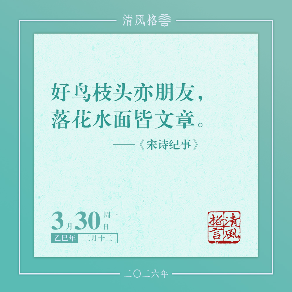 清風格言 | 好鳥枝頭亦朋友,落花水面皆文章