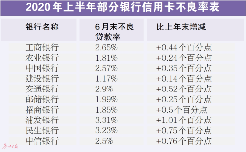 從信用卡資產(chǎn)質(zhì)量看,15家披露了可比數(shù)據(jù)的上市銀行中,截至6月末,2家銀行信用卡不良貸款率較年初降低,對外開放有力促進了資本市場運行質(zhì)量的提升。其中,中信銀行稱,受疫情影響,信用卡持卡人收入下降、還款能力降低、還款意愿減弱,信用風險有所承壓。從行業(yè)上看,信用卡不良貸款和問題貸款相對高發(fā)的持卡人所在行業(yè)主要是商業(yè)貿(mào)易和制造業(yè)。