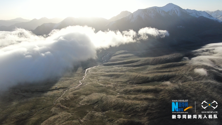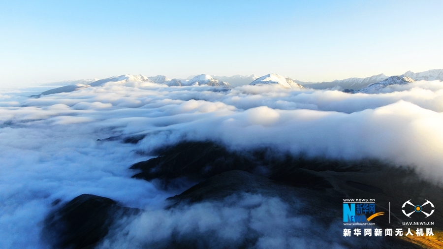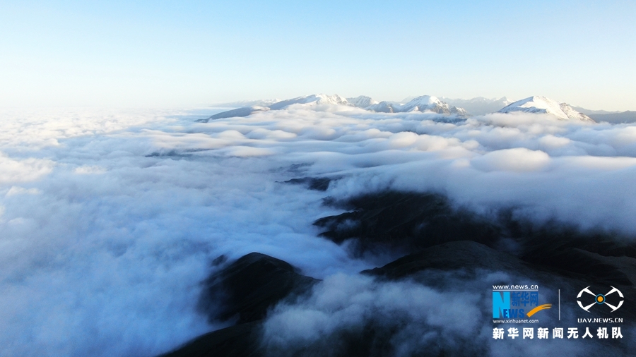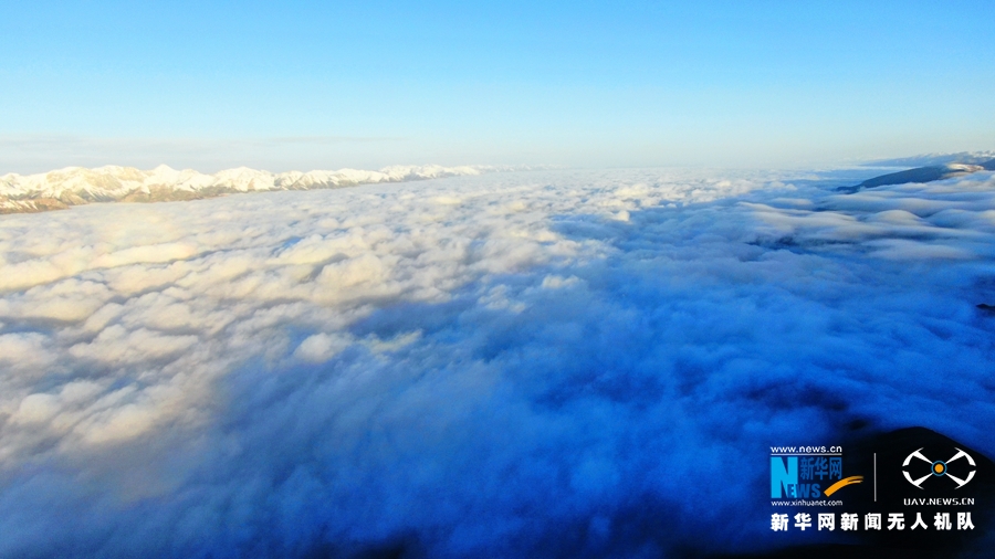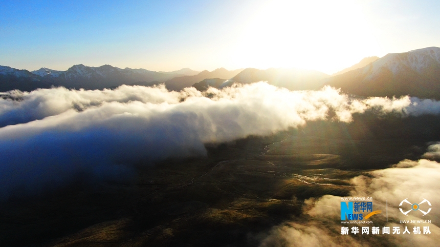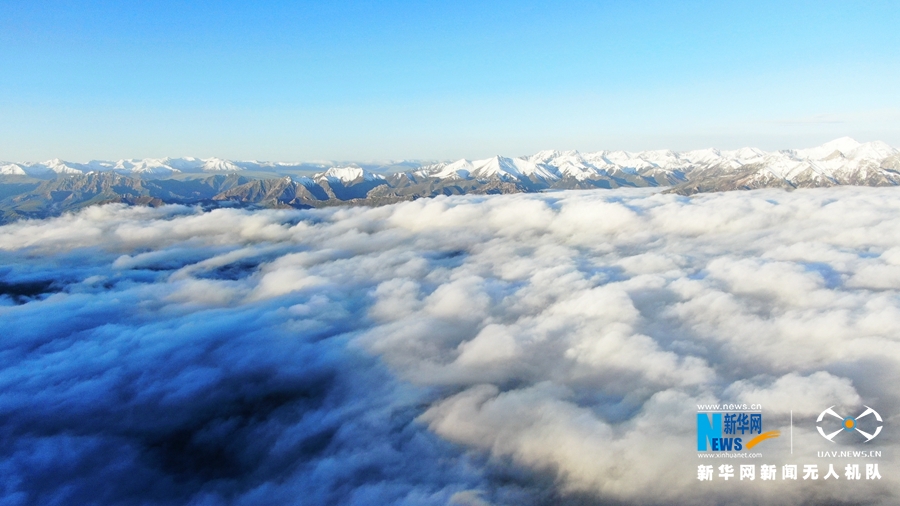 這是8月18日在甘肅省肅南裕固族自治縣境內(nèi)拍攝的祁連山云霧景觀。當日,祁連山區(qū)云霧繚繞,從高空俯瞰,如波濤洶涌起伏,與雪山、藍天相互輝映,美不勝收。(飛手:武雪峰 攝影:安維斌)