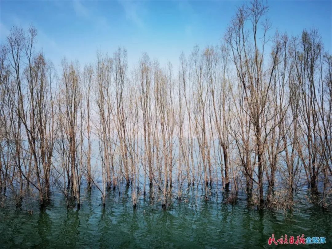 在岸邊,可以看到10公里的柳樹“站”在水中,根連著根,枝連著枝。這些高大的柳樹,不僅減緩了水面上襲來的風(fēng)浪,形成第一道保護“堤壩”,還成為一道亮麗的風(fēng)景線——倒映在湖面上的樹木婀娜多姿,鳥兒在樹杈上筑巢棲息,魚兒在樹下游玩,好一幅綿長的水鄉(xiāng)畫卷。
