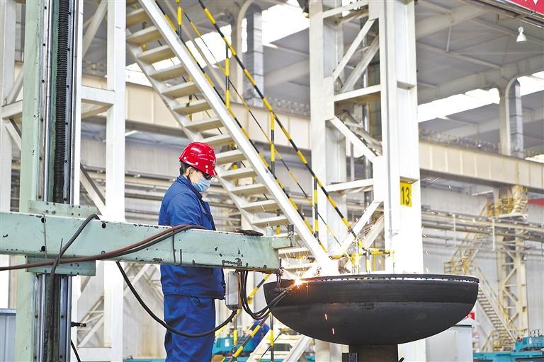 蘭石重裝煉化公司裝焊一車間生產(chǎn)繁忙。新甘肅·甘肅日?qǐng)?bào)記者 王占東