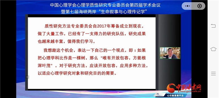 樂國(guó)安在回顧質(zhì)性心理學(xué)同仁們?cè)谶^(guò)去幾年的努力和取得的成績(jī)的基礎(chǔ)上,提醒大家,在方法的應(yīng)用上,要秉承開放的態(tài)度,“唯有開放包容,方能根深葉茂”。