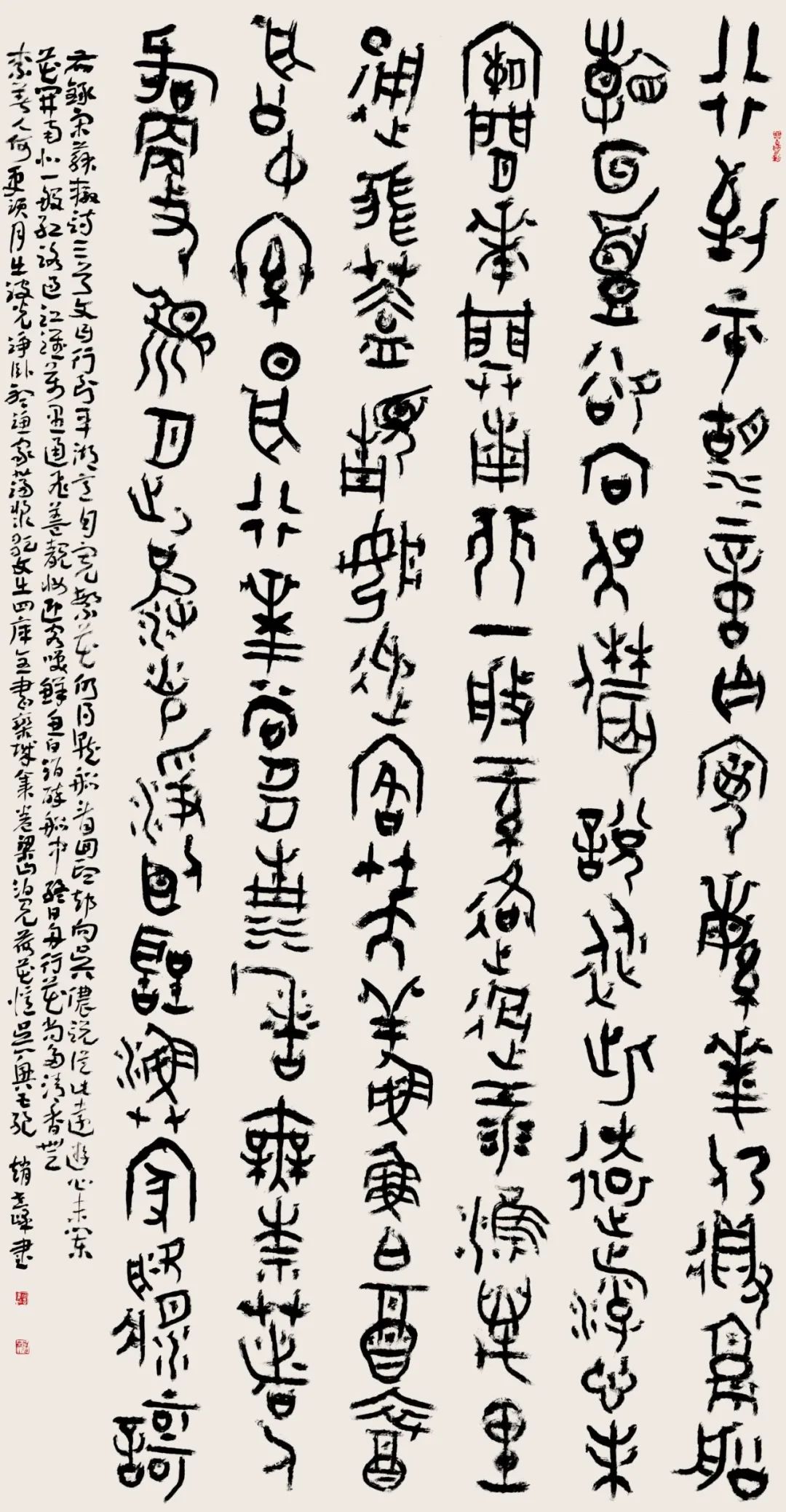 展覽作品風(fēng)格多樣,立意高遠(yuǎn)。作品模仿少、創(chuàng)造多,減少外在形式,力求豐富內(nèi)涵。“二王”體系雖然占主流,但是寫經(jīng)、漢簡占有相當(dāng)大的數(shù)量,百花齊放,百花爭艷。極大地改變了“有時展出的作品還存在著抄寫代替書寫,不諳文句,不解文意,不識文字,不具文心”的情況。書法家們把寄情抒懷與記言存史相結(jié)合,將個人藝術(shù)追求與時代發(fā)展潮流相貫通,顯示了深厚扎實的藝術(shù)功力,呈現(xiàn)了創(chuàng)新發(fā)展的最新成果。