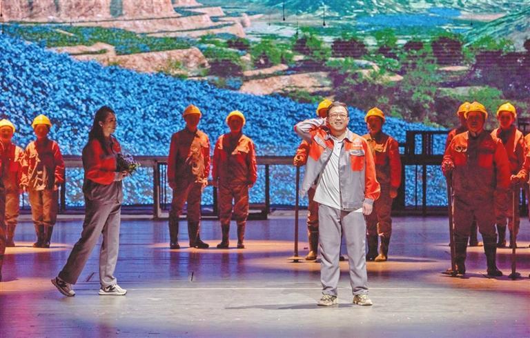 在兩個小時的演出中,全體演職人員以群像式表演,將蘭渝鐵路建設(shè)者的科技創(chuàng)新精神、愚公移山精神、大國工匠精神完美展現(xiàn)在舞臺上。“那座山,不太高,胡麻花開山上頭,山根根,開洞洞,火車鉆進(jìn)山里頭……”伴隨著悠揚(yáng)的謝幕音樂,劇場內(nèi)爆發(fā)出了經(jīng)久不息的熱烈掌聲。