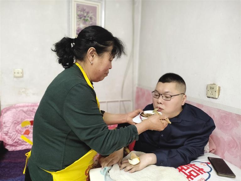 轉(zhuǎn)眼間,呂元明馬上要過18歲的生日了,一家人如臨大敵。2001年5月28日,呂元明18歲的生日如約而至。睡夢中,呂元明睜開眼睛,眼前是一片白,僵硬的身體限制住了他的行動,他只是不停地眨著眼睛,反復(fù)確認(rèn)自己“是不是還活著”。思考間,他的疑慮被母親打消了,母親依舊抱著他洗臉、上廁所、喂飯……他在母親的幫助下完成起床后的一系列“程序”,“18歲后的每一分每一秒,對我來說就是一個‘奇跡’!”呂元明說。