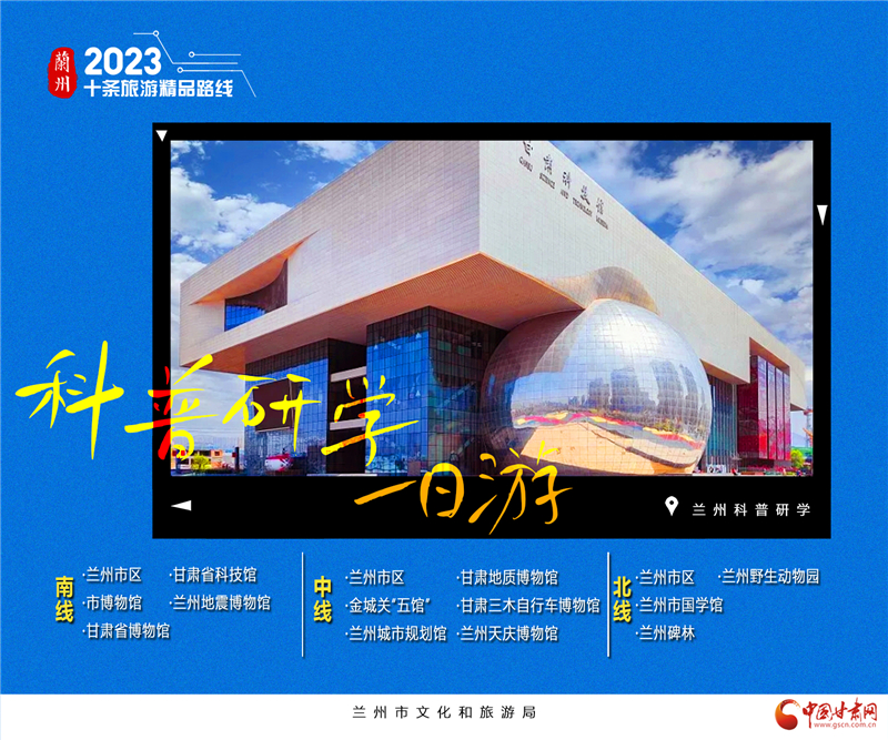 6.蘭州科普研學1日游。蘭州博物館有很多,可謂是品類齊全。綜合類博物館如省博、市博自不用說,中國旅游標志“馬踏飛燕”原件陳列真的不想去看看?各類專門博物館也是非常齊全,秦腔博物館、黃河橋梁博物館、城市規(guī)劃館、自行車博物館、地震博物館等……“蘭州科普研學1日游”三條線,分別為南線、中線和北線。