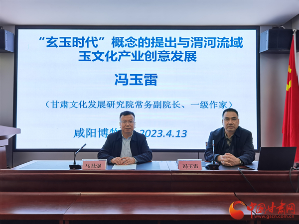 中國(guó)甘肅網(wǎng)4月13日訊 為進(jìn)一步促進(jìn)博物館學(xué)術(shù)研究交流創(chuàng)新,激發(fā)博物館發(fā)展活力,持續(xù)推動(dòng)博物館高質(zhì)量發(fā)展,陜西咸陽(yáng)博物院于4月13日下午3點(diǎn)舉辦第二期“咸博大講堂”專題講座,甘肅文化發(fā)展研究院常務(wù)副院長(zhǎng)、一級(jí)作家馮玉雷作了題為《“玄玉時(shí)代”概念的提出與渭河流域玉文化產(chǎn)業(yè)創(chuàng)意發(fā)展》的學(xué)術(shù)報(bào)告。咸陽(yáng)博物院院長(zhǎng)馬社強(qiáng)主持講座。
