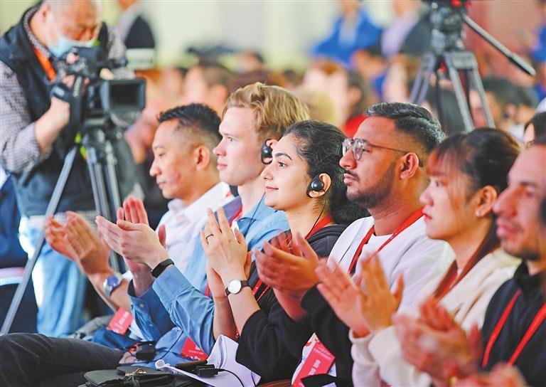 4月27日,甘肅旅游推介及國(guó)際旅行商合作大會(huì)舉辦,與會(huì)嘉賓聆聽(tīng)推介。