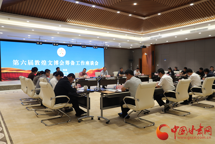 在隨后召開的座談會上,敦煌市相關負責人介紹了籌備工作情況和需要協(xié)調解決的事項。文化展覽組,論壇會議組、接待聯(lián)絡組相關負責人與敦煌市對應工作組進行對接,對需要協(xié)調解決的事項進行了交流。