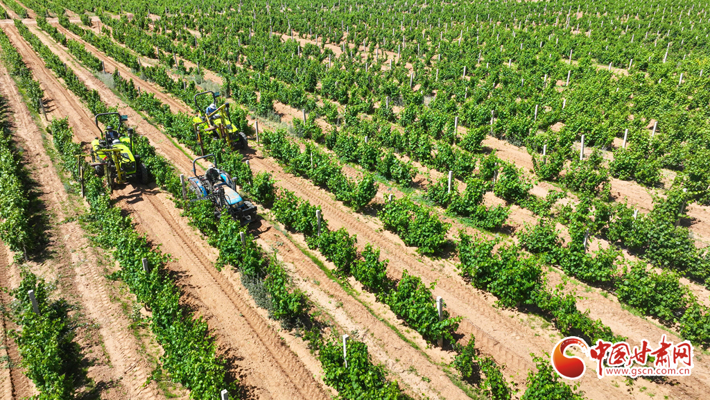 6月13日,張掖市臨澤縣板橋鎮(zhèn)昔日的北部荒漠區(qū),如今已是萬畝葡萄種植基地。