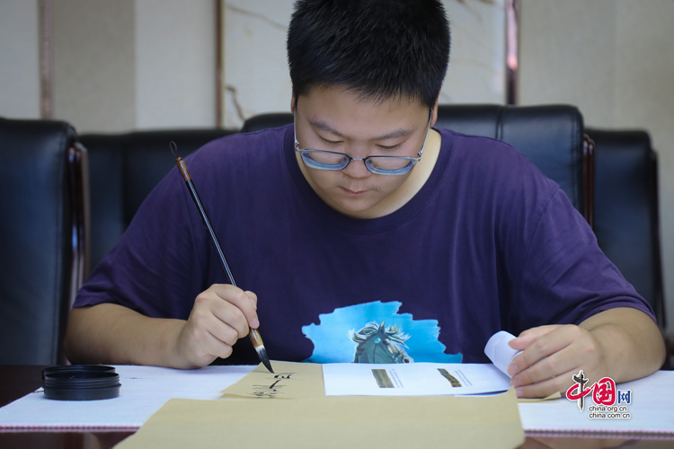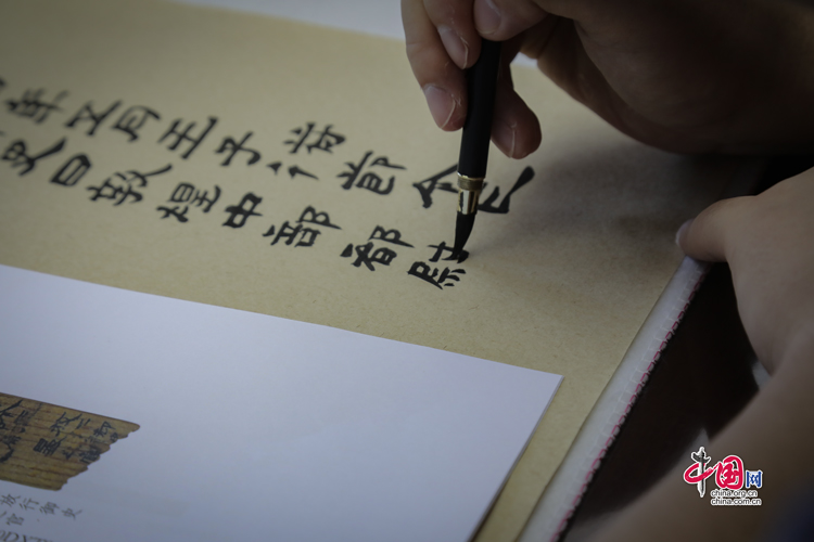 7月31日,蘭州大學古文字學強基計劃同學正在臨摹簡牘。中國網(wǎng)記者 鄭偉 攝