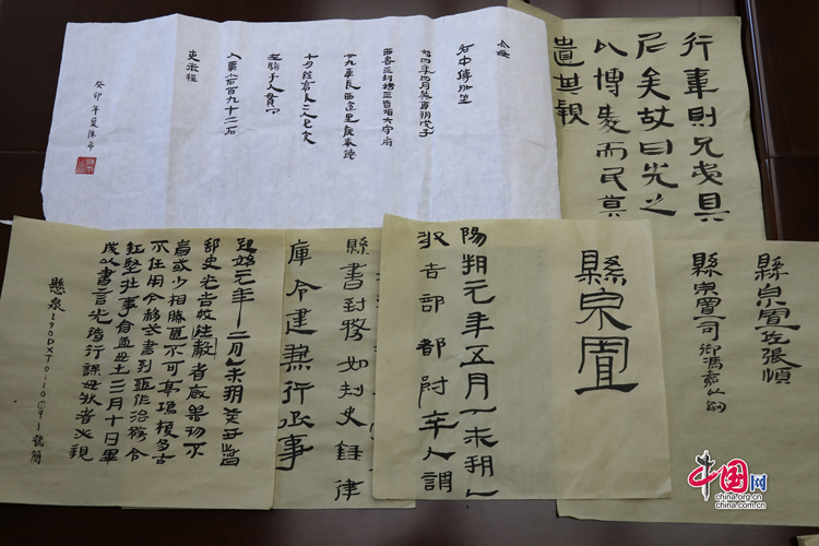 7月31日,蘭州大學古文字學強基計劃同學展示臨摹簡牘的書法作品。中國網(wǎng)記者 鄭偉 攝