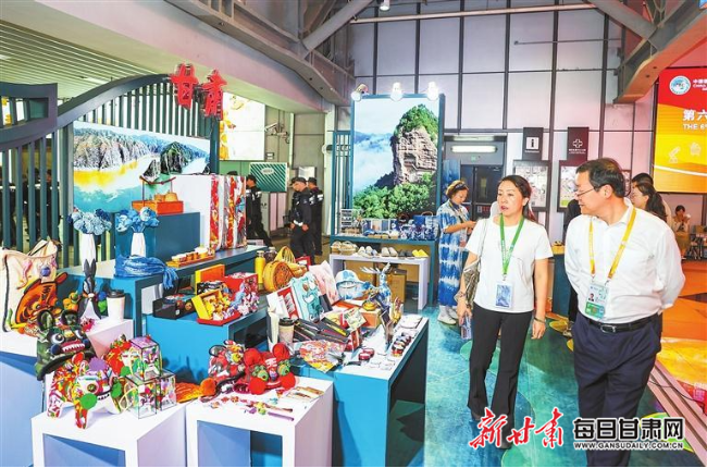為更好推動(dòng)優(yōu)秀傳統(tǒng)文化創(chuàng)造性轉(zhuǎn)化、創(chuàng)新性發(fā)展,全面展示甘肅省非遺、文創(chuàng)最新成果,推動(dòng)文旅貿(mào)深度融合,我省以“交響絲路·如意甘肅”為主題,在進(jìn)博會(huì)人文交流展區(qū)搭建甘肅省展區(qū),展示蘭州黃河鐵橋、天水麥積山、平?jīng)鲠轻忌健⒕派誓显啬?、張掖七彩丹霞、嘉峪關(guān)關(guān)城、隴南官鵝溝等甘肅省熱門(mén)景區(qū)圖片,全方位立體式向與會(huì)嘉賓展示甘肅厚重的文化底蘊(yùn)和豐富的旅游資源。