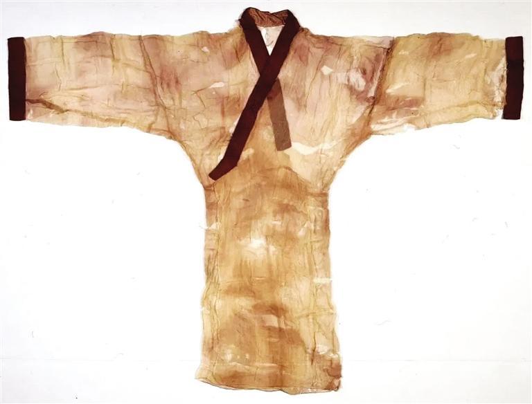 值得一提的是,在馬王堆漢墓出土的文物中,最受矚目的是做工精細(xì)和舉世聞名的素紗單衣,該件傳世珍寶僅重49克,相當(dāng)于一個普通雞蛋的重量,乃西漢時期紡織巔峰之作。素紗單衣衣長128厘米,通袖長190厘米。右衽直裾,重49克。漢代文獻(xiàn)描述其薄如蟬翼,輕若云霧。