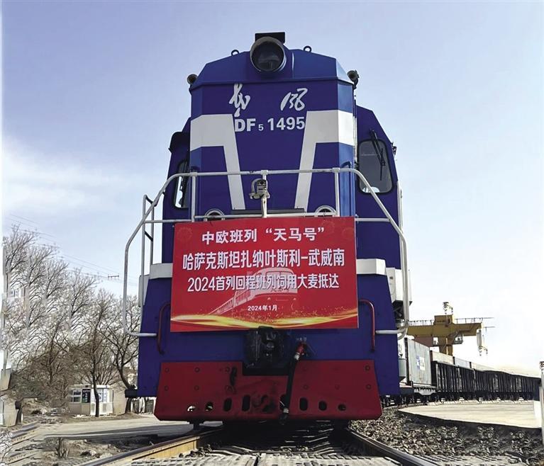中國甘肅網1月18日訊 據蘭州晚報報道 日前,一列搭載62個集裝箱1600多噸,貨值406萬元的哈薩克斯坦進口糧飼回程班列抵達武威南站,這是今年中鐵蘭州局集團公司蘭州貨運中心首趟中歐進口糧飼專列。此趟班列在蘭州貨運中心、市商務局和金昌海關共同謀劃下,從哈薩克斯坦扎納葉斯利出發(fā),由阿拉山口入境,歷時8天,順利抵達武威南貨場。
