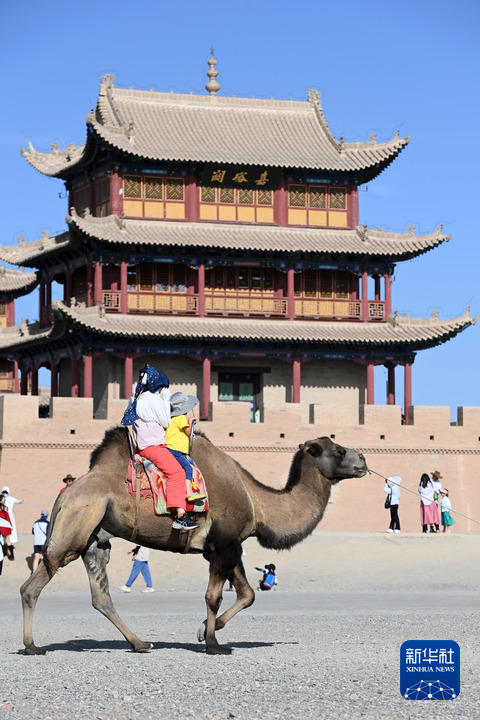 5月10日,游客在嘉峪關(guān)關(guān)城景區(qū)游玩。新華社每日電訊記者 馬希平 攝