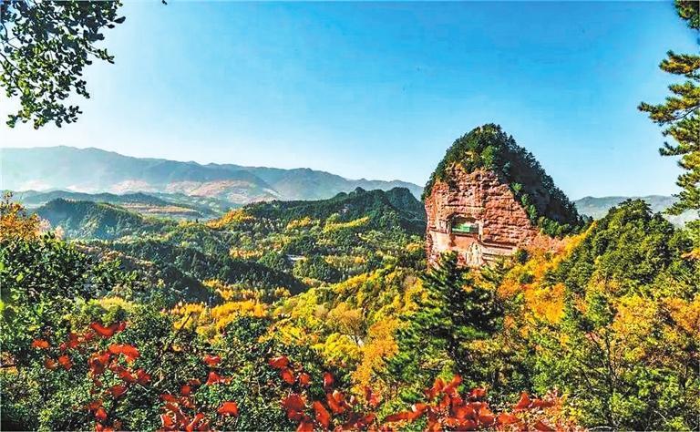 麥積山石窟 麥積山石窟地處天水市麥積區(qū)東南30公里的小隴山中,因該山形似農(nóng)家麥垛而得名。麥積山石窟與敦煌、龍門、云岡并稱為中國四大石窟。麥積山石窟保存的造像以泥塑為主,歷代連續(xù)不斷,全面展示了古代泥塑發(fā)展演變的過程,是研究雕塑史、美術(shù)史的重要資料,有“東方雕塑陳列館”的美譽(yù)。