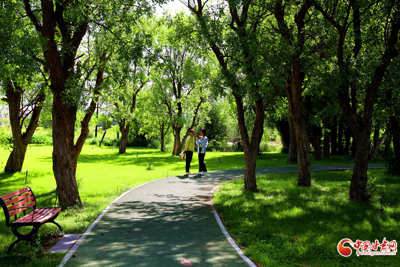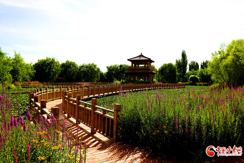 7月8日,雨后的臨澤小城初晴,天空湛藍(lán)。棗鄉(xiāng)風(fēng)情園的睡蓮池畔,成為市民和游客的熱門去處。古亭倒影在平靜的池水中,與盛開的睡蓮相映成趣。市民游客坐在池邊長椅上閑聊,鍛煉的人們也沉浸在這愜意的氛圍中。