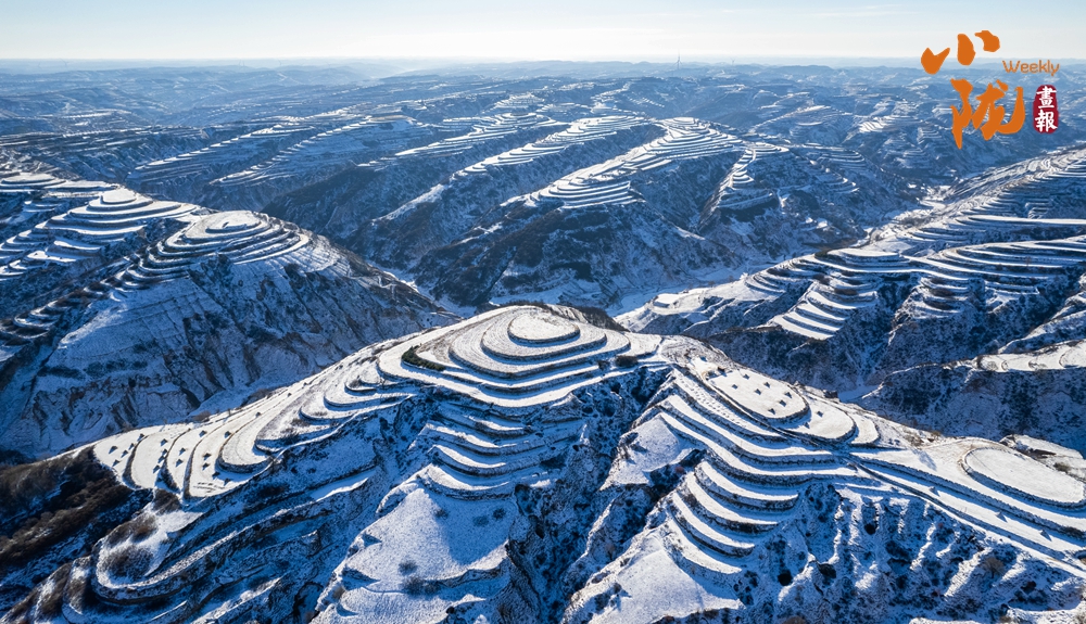 塬上樹木被雪輕輕點染,披上素白衣裳,與覆雪的梯田虛實相映,構(gòu)成一幅疏密有致、氣韻生動的天然水墨畫,靜置于蒼茫天地間。