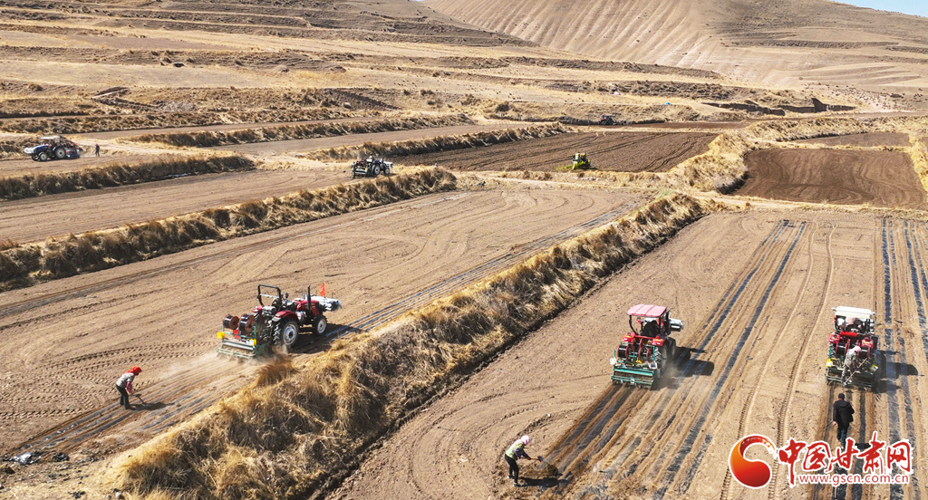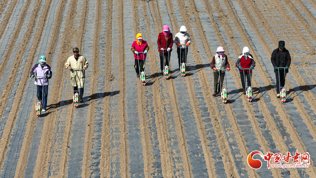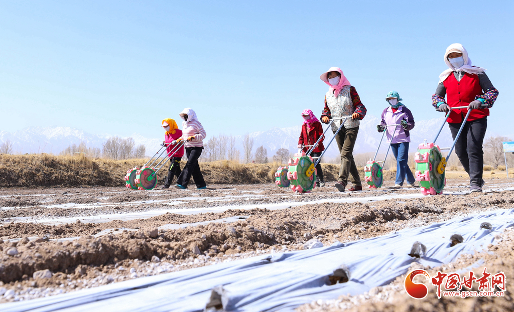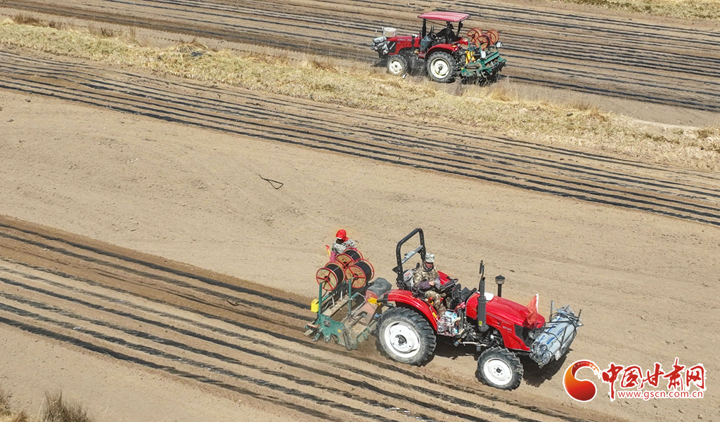 4月3日,張掖市民樂(lè)縣5萬(wàn)多畝制種油菜基地上,種植戶正忙著覆膜、鋪設(shè)滴灌帶,并用手扶小型滾輪播種器進(jìn)行精量播種,田間地頭一派繁忙的春耕景象。