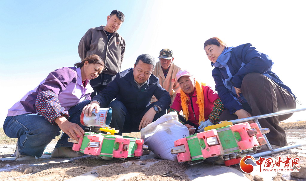 國(guó)家油菜產(chǎn)業(yè)技術(shù)體系張掖綜合試驗(yàn)站專家現(xiàn)場(chǎng)指導(dǎo)種植農(nóng)戶進(jìn)行精量播種