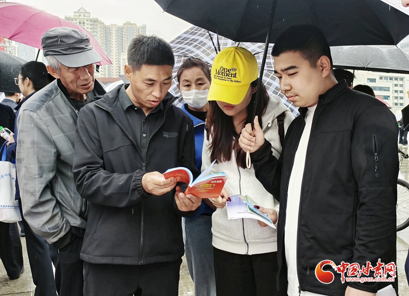 圖為蘭州市民正在領(lǐng)取全民國家安全教育日的宣傳資料