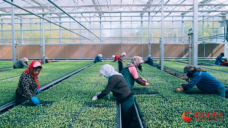 崇信汭河川現(xiàn)代循環(huán)農(nóng)業(yè)示范園連棟溫室大棚內(nèi)群眾正在培育辣椒苗