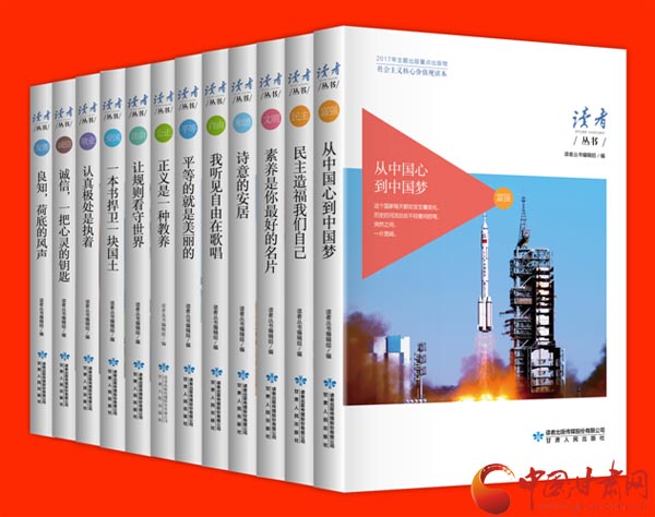 《讀者叢書·社會主義核心價值觀讀本》(共12卷)是中宣部、國家新聞出版廣電總局2017年主題出版重點出版物之一,于2017年7月由甘肅人民出版社出版發(fā)行。叢書圍繞“富強、民主、文明、和諧、自由、平等、公正、法治、愛國、敬業(yè)、誠信、友善”社會主義核心價值觀相關(guān)主題,從各種圖書、報刊、網(wǎng)站上精選600余篇優(yōu)美文章匯編成冊,每冊凸顯一個主題,為讀者奉上了一份精神佳肴和文化大餐。