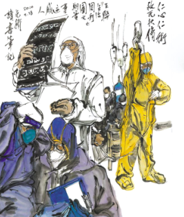 中國畫《仁心仁術(shù),救死扶傷》。
