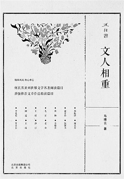 就本書作者馬靖云的潛質(zhì)和文筆來說,她不應(yīng)該只提供136千字的《文人相重》就戛然而止,她還應(yīng)該有續(xù)篇。而今,她雖然年過九旬,卻還思維敏捷,記憶鑿鑿,筆力遒勁。就文學(xué)所而言,依然以科研為視角,至少還有兩方面的人可書寫,而且有價值、有市場。一是從延安來的、從解放區(qū)來的老革命,如王平凡、唐棣華、朱寨、賈芝、力揚,他們或當領(lǐng)導(dǎo),或為學(xué)者,稍加發(fā)掘,均可能得富礦;二是一大群中青年學(xué)者的涌現(xiàn),如曹道衡、胡念貽、劉世德、陳毓羆、蔣和森、錢中文、樊駿、袁可嘉、陳冰夷、柳鳴九、陳燊、董衡巽,等等,無不學(xué)有專攻,有故事,記錄下來,就精彩,甚至就是詩。
