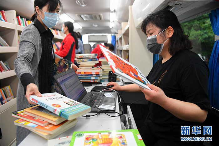 3月26日,在長(zhǎng)沙岳麓區(qū)石嶺塘社區(qū),市民在流動(dòng)圖書館里辦理借書。 近日,在做好疫情防控工作的同時(shí),長(zhǎng)沙流動(dòng)圖書館恢復(fù)運(yùn)營(yíng)。長(zhǎng)沙流動(dòng)圖書館是長(zhǎng)沙圖書館的總分館流動(dòng)服務(wù)項(xiàng)目之一,以大巴車為載體,每月定期到社區(qū)、學(xué)校、企業(yè)、工地等區(qū)域,為市民提供閱覽、咨詢、辦證、借書、還書等便捷化公共服務(wù)。 新華社記者 陳澤國(guó) 攝