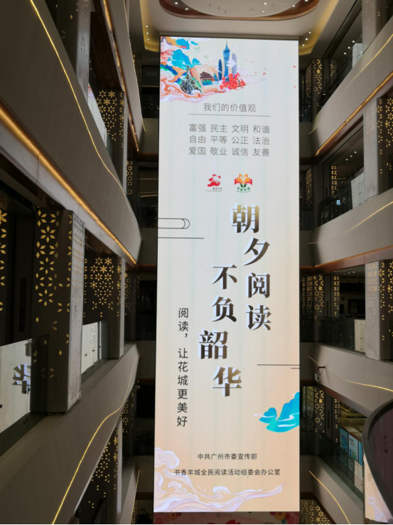 2020廣州讀書月以“朝夕閱讀不負韶華”為主題,廣州塔、花城廣場、北京路、流花展貿(mào)中心、廣州圖書館、廣州購書中心、廣州各大新華書店、廣州地鐵、廣州報刊亭等場所,紛紛以亮燈或張貼主題海報的形式,營造濃厚的閱讀氛圍,讓閱讀力量無處不在、溫暖人心、提振信心。