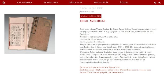 兩冊《永樂大典》海外拍出812萬歐元!誰買走了它?