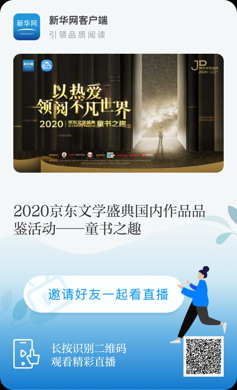 據(jù)介紹,“童書之趣”直播之后,還有10月19日“科幻之美”、10月20日“IP之潮”這兩場直播陸續(xù)在京東直播、新華云直播大家見面。阿來、蘇童、紫金陳等名家將為觀眾繼續(xù)分享閱讀之美。10月31日,2020京東文學(xué)盛典之夜將在北京衛(wèi)視終極亮相,年度推介好書將最終揭曉,值得期待。