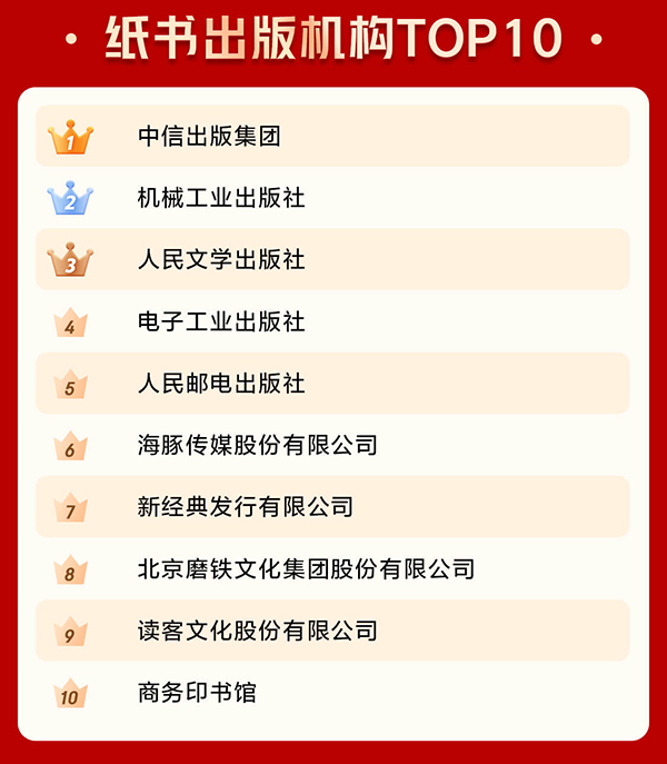 此外,通過紙書出版機構TOP10、電子書出版機構TOP10可以看出,品牌出版機構依靠過硬的產品以及品牌價值,持續(xù)獲得讀者認可,90%上榜的出版機構與2019年保持一致。