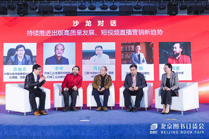 沙龍對話環(huán)節(jié)中,生活·讀書·新知三聯(lián)書店總編輯肖啟明,機械工業(yè)信息研究院院長、機械工業(yè)出版社社長李奇,華東師范大學(xué)出版社董事長、社長王焰,國家一級作家雪漠,共同探討短視頻直播營銷心得、經(jīng)驗及趨勢。