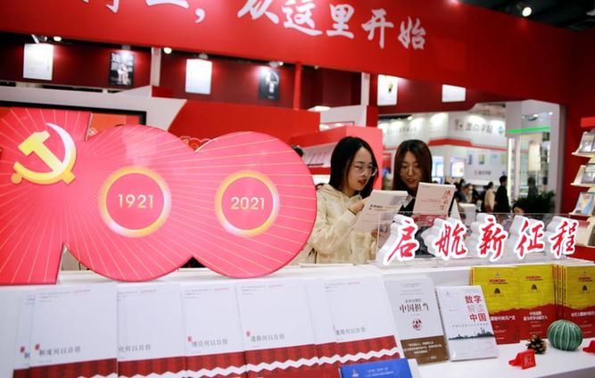 在會(huì)場(chǎng)最醒目位置特設(shè)慶祝建黨100周年主題圖書(shū)展區(qū)