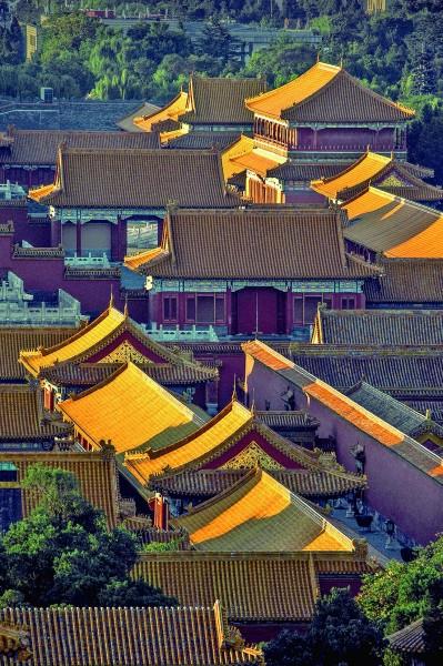 站在景山上俯瞰故宮建筑群,朝陽之下,一片金黃。在古代,這種色彩是屬于皇家的,如今則可以被每一個(gè)普通人駐足欣賞。