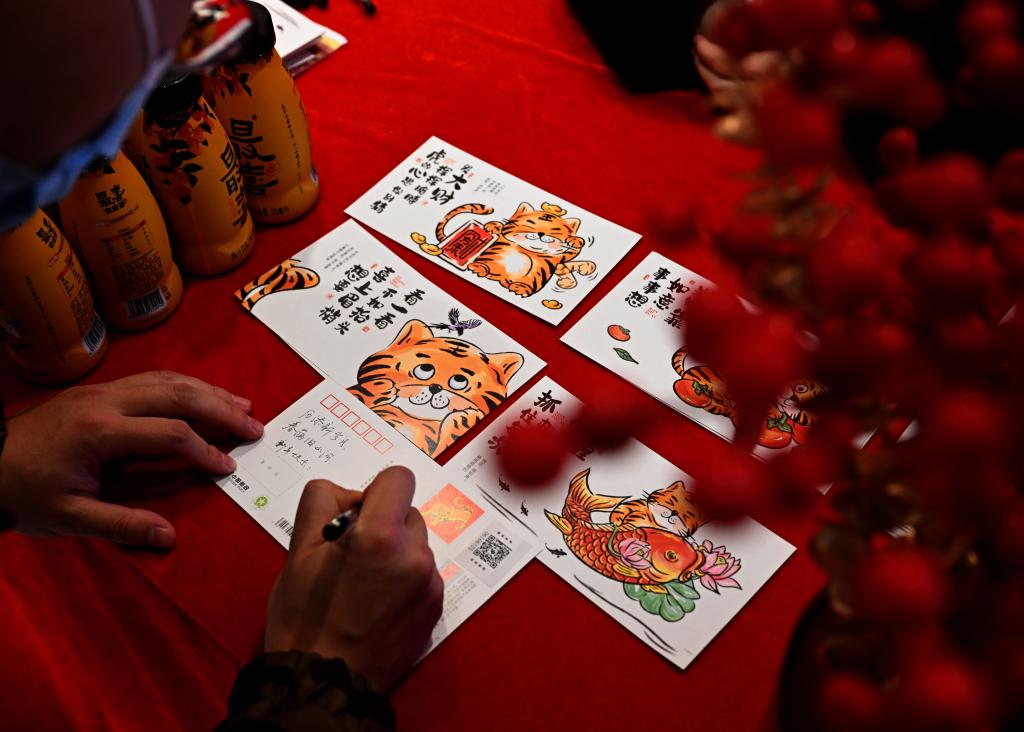 春節(jié)假期,作為文化節(jié)目《2022中國詩詞大會》的線下活動,詩詞市集在北京國貿(mào)商城舉行?;顒友埵忻駥懴乱痪湓?,給2022年寄出一張詩詞明信片,帶動詩歌熱潮,推動詩詞文化走入百姓家。