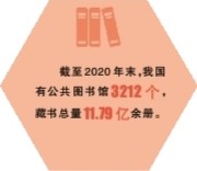 數(shù)據(jù)統(tǒng)計(jì),截至2020年末,我國有公共圖書館3212個,藏書總量11.79億余冊,實(shí)際使用房屋建筑面積1785.77萬平方米,平均每萬人公共圖書館建筑面積為126.49平方米。