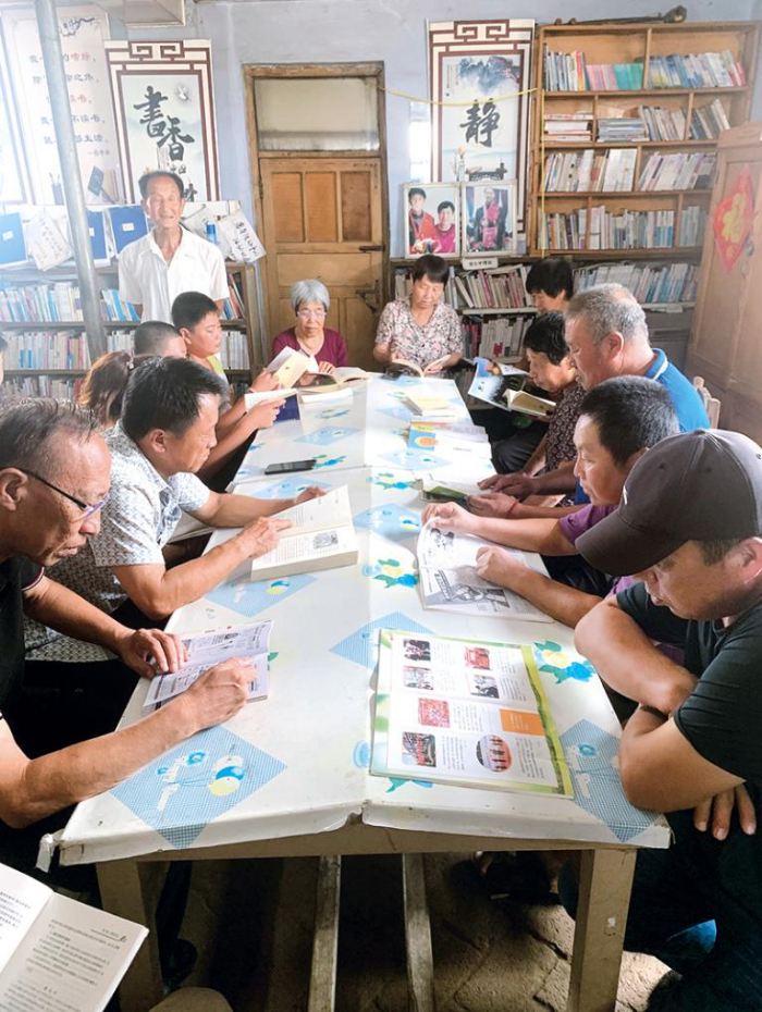 2021年8月24日,阜新市阜新蒙古族自治縣八家子鎮(zhèn)的鄉(xiāng)親們?cè)跁葑x書 阜新市阜新蒙古族自治縣八家子鎮(zhèn)八家子村村委會(huì)供圖
